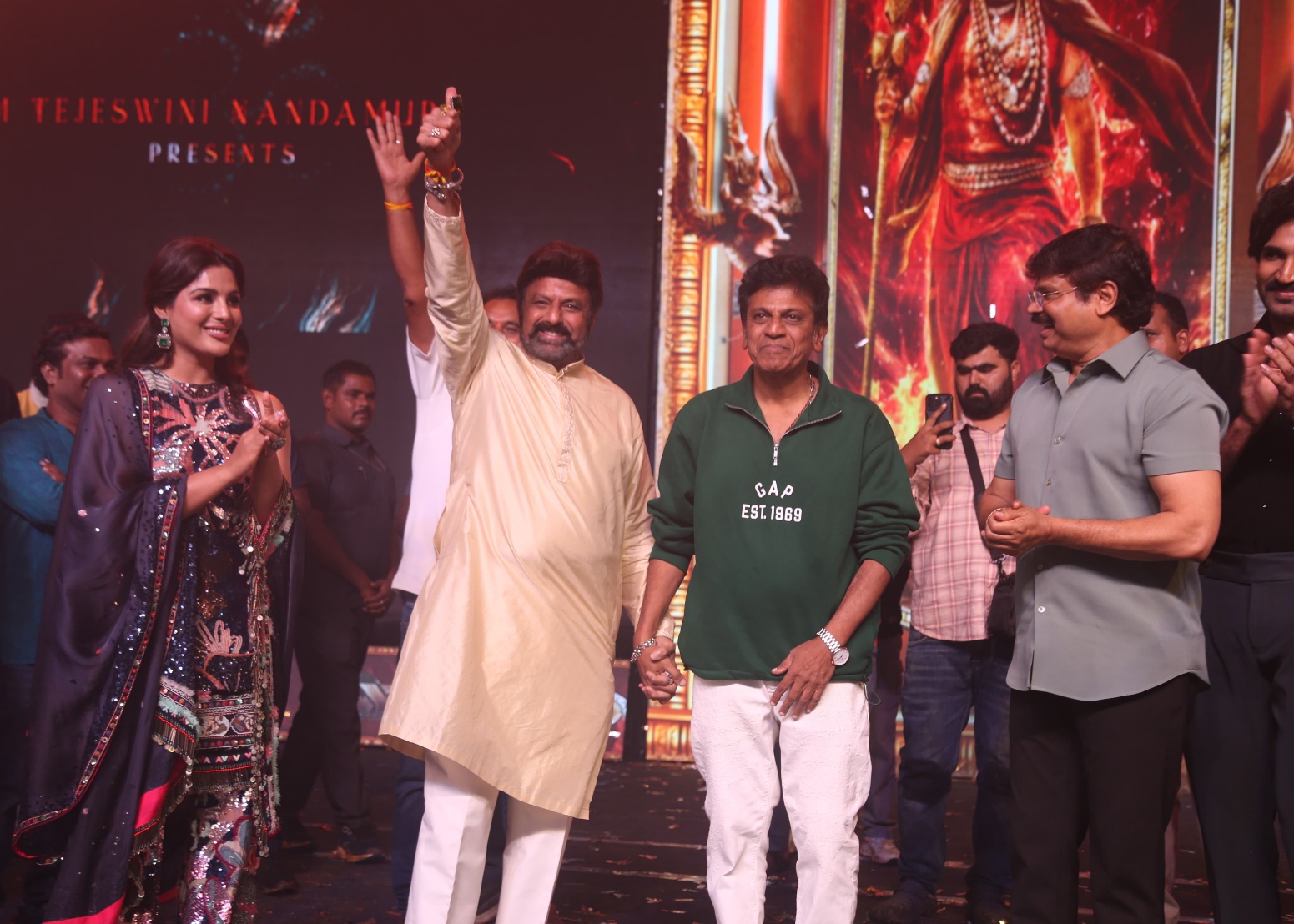 The team opted for aggressive and Pan India level promotional campaign. Crafted on a massive scale by Raam Achanta and Gopichand Achanta under the 14 Reels Plus banner, and presented by M Tejaswini Nandamuri, the film generated strong buzz with glimpses and songs. Today, the makers unveiled the film’s theatrical trailer in Bangalore, with Kannada Star Shiva Rajkumar gracing the occasion.